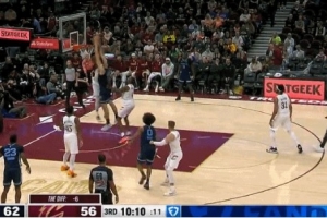 这球算不算?半场结束里夫斯积极拼抢 小手一拍压哨补篮命中