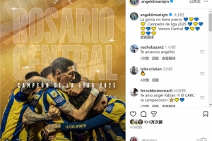体育资讯11月21日讯 阿超决定恢复年度冠军,迪马利亚所在的罗萨里奥中央获得2025年年度联赛冠军,迪马利亚社媒庆祝夺冠。